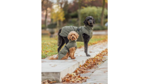• mit zwei wasserdichten Reißverschlüssen zum Anleinen an Halsband bzw. Geschirr