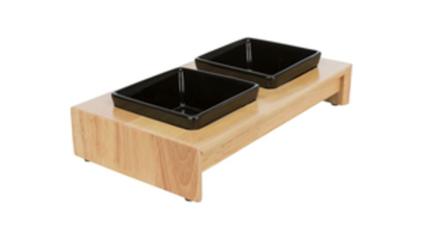 Napf-Set, Keramik/Holz, 2 × 0,2 l/10 × 10 cm/28 × 5 × 15 cm, schwarz/hellbraun